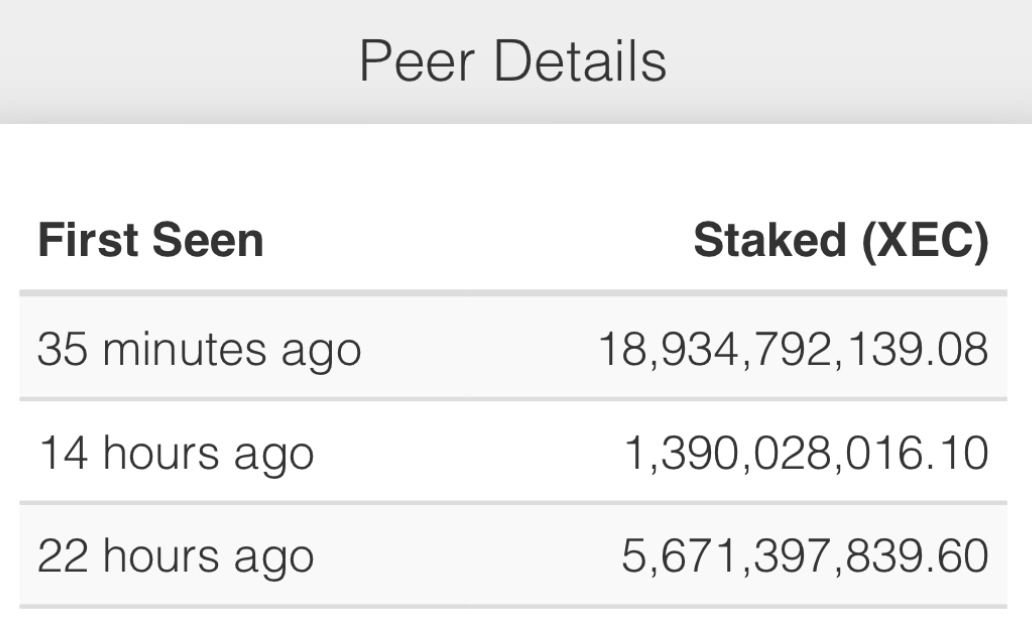 The other day a new Avalanche peer briefly joined the eCash network with a total stake of 18,934,792,139.08 XEC. It was suddenly the largest staker on the network, so I decided to do a little digging.
