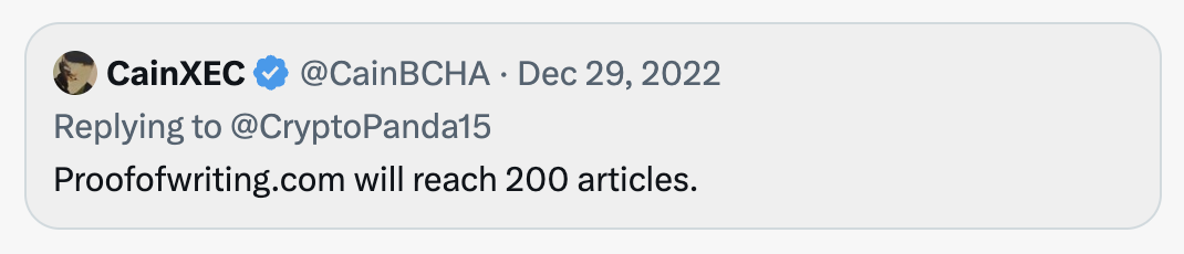 Now as we finish out the last few days of 2023, I’m happy to be able to submit POW#200 for your reading pleasure. I want to personally thank everyone who has taken the time to read my work over the past year and given me a few minutes of your attention each week. And if you took the extra step of actually sending me an eCash tip, I can say without a doubt that without you, I would not have been able to achieve the goal I’d set for myself a year earlier.