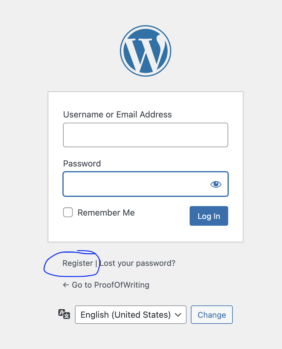 To create an author account, click on “Author Login” in the menu. You will be taken to this screen where you can click “Register”: